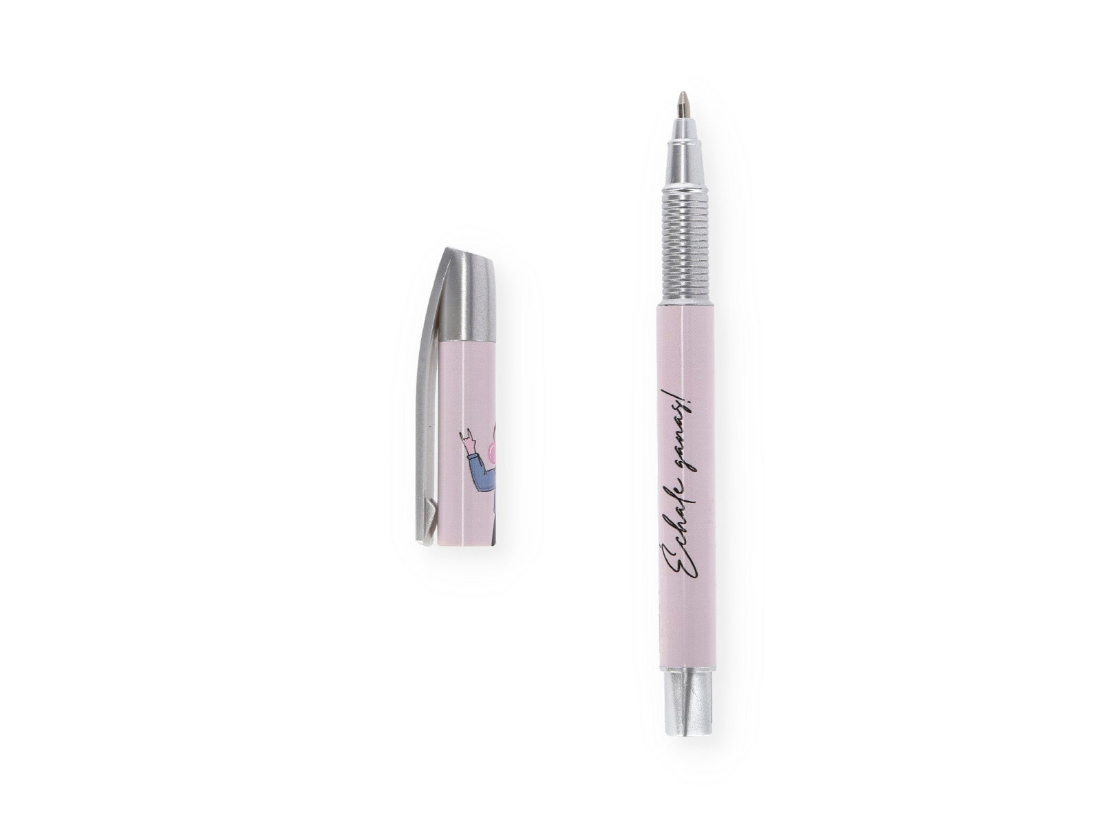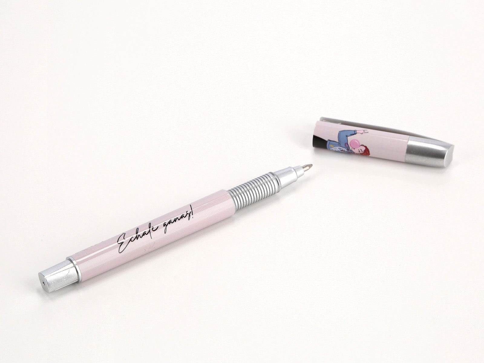 Esta caneta da ALE-HOP não é apenas para escrever, é também um sopro de otimismo com a sua mensagem "Échale ganas". Destaca-se pelo design original em rosa pálido e pelo rato único na tampa. Com tampa funcional de presilha, adiciona cor e diversão ao
