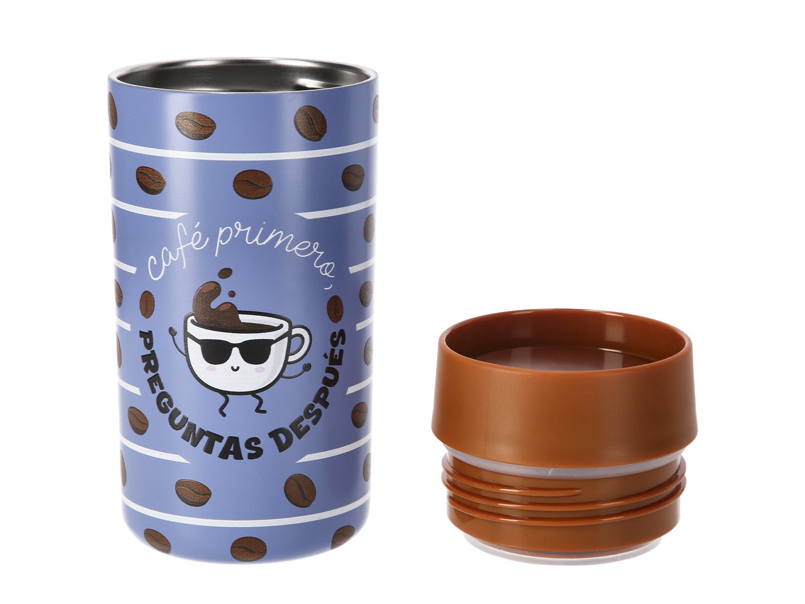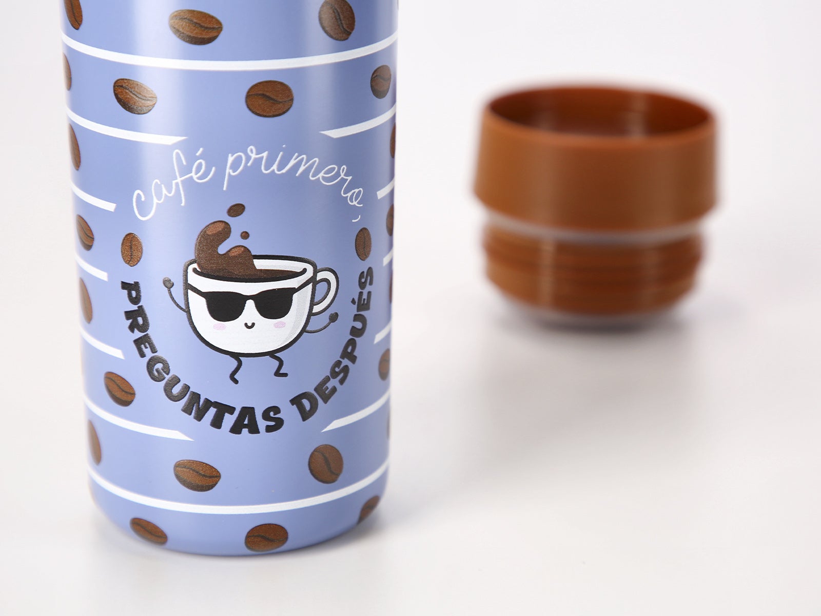 Se de manhã não és pessoa até ao primeiro gole, este copo será o teu novo melhor amigo. Com a sua mensagem divertida "Café primeiro, perguntas depois" deixa claro que antes de falar é preciso recarregar energia. Perfeito para levar a tua bebida favorita enquanto vais para o trabalho, para a aula ou simplesmente a caminho do teu momento de paz, com o estilo descontraído e original da ALE-HOP.