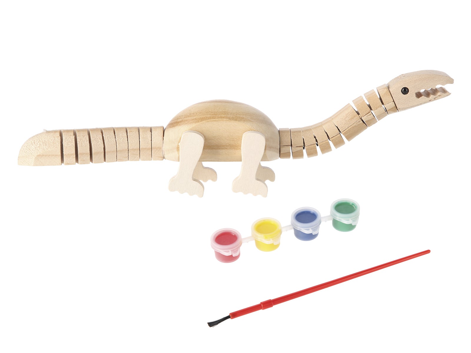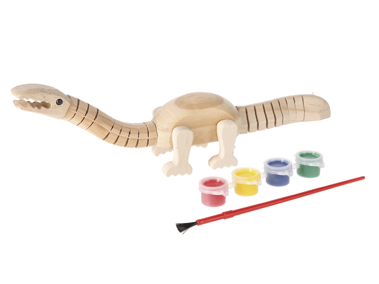 <strong>Produto:</strong> O dinossauro de madeira articulado para pintar te transportará a uma era jurássica cheia de criatividade. Um projeto que deixará a tua imaginação voar.
