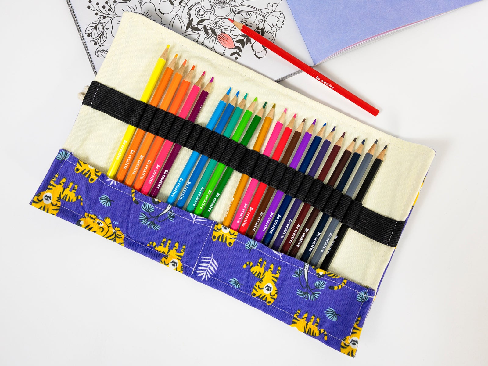 Estojo enrolável tigre é perfeito para levar os teus lápis e marcadores sempre à mão sem que se descontrolem pela mochila. O seu design alegre com um simpático tigre transforma qualquer momento de estudo ou desenho em algo muito mais divertido, muito na linha descontraída da ALE-HOP.