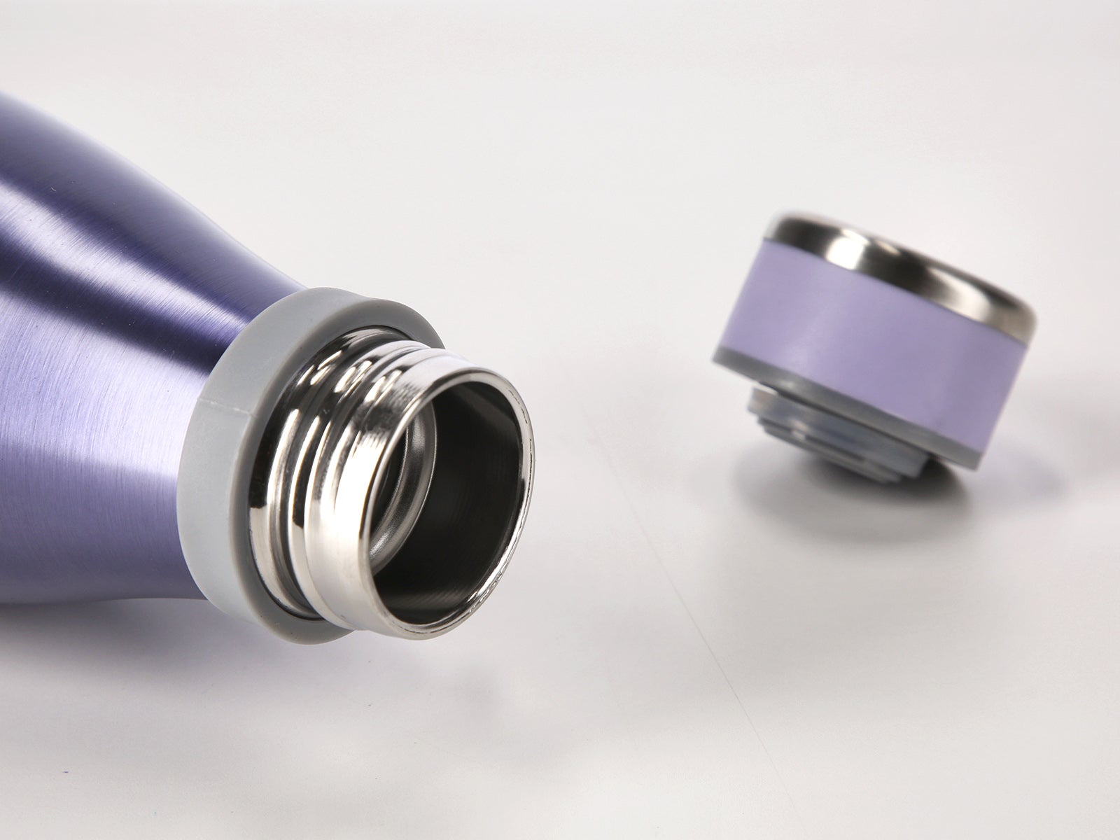 - Fecho prático: tampa de rosca pensada para transportar a garrafa com comodidade.