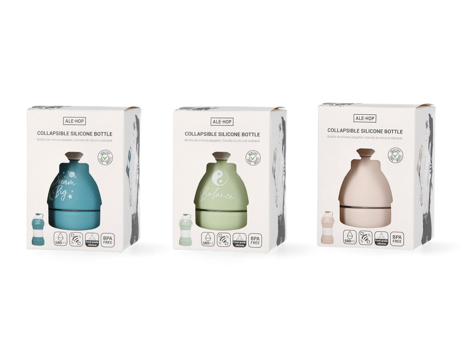 - Compra consciente: Tal como tu, a ALE-HOP também se preocupa com o nosso planeta. Com o seu design reutilizável, estas garrafas dobráveis estão a fazer a sua parte para ajudar a reduzir o desperdício de plástico. Junta-te ao movimento e torna-te parte da solução!