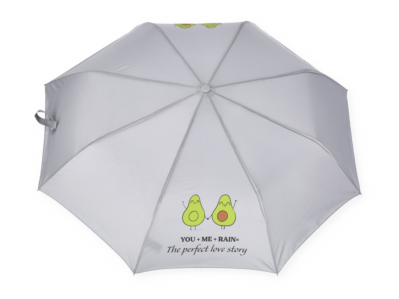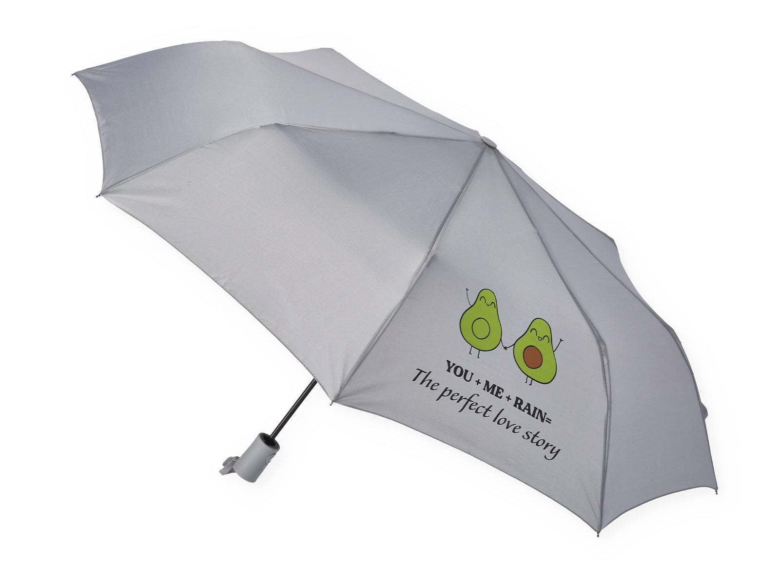 O guarda-chuva curto "You + me + rain = The perfect love story" é projetado para aqueles que encontram em cada gota de chuva uma nova história de amor. Este guarda-chuva não só te acompanha, mas é o companheiro ideal para esses dias cinzentos. Quando o levas, o número de sorrisos sob a chuva aumenta.