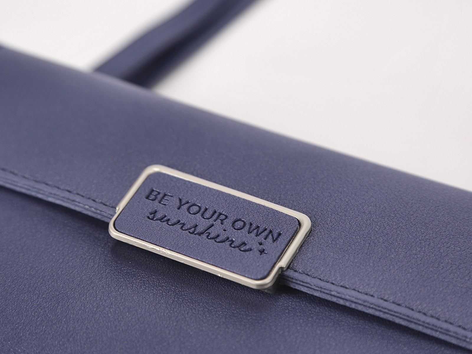 - Design versátil: Elegante em azul-marinho, o seu design horizontal adapta-se perfeitamente a qualquer ocasião.