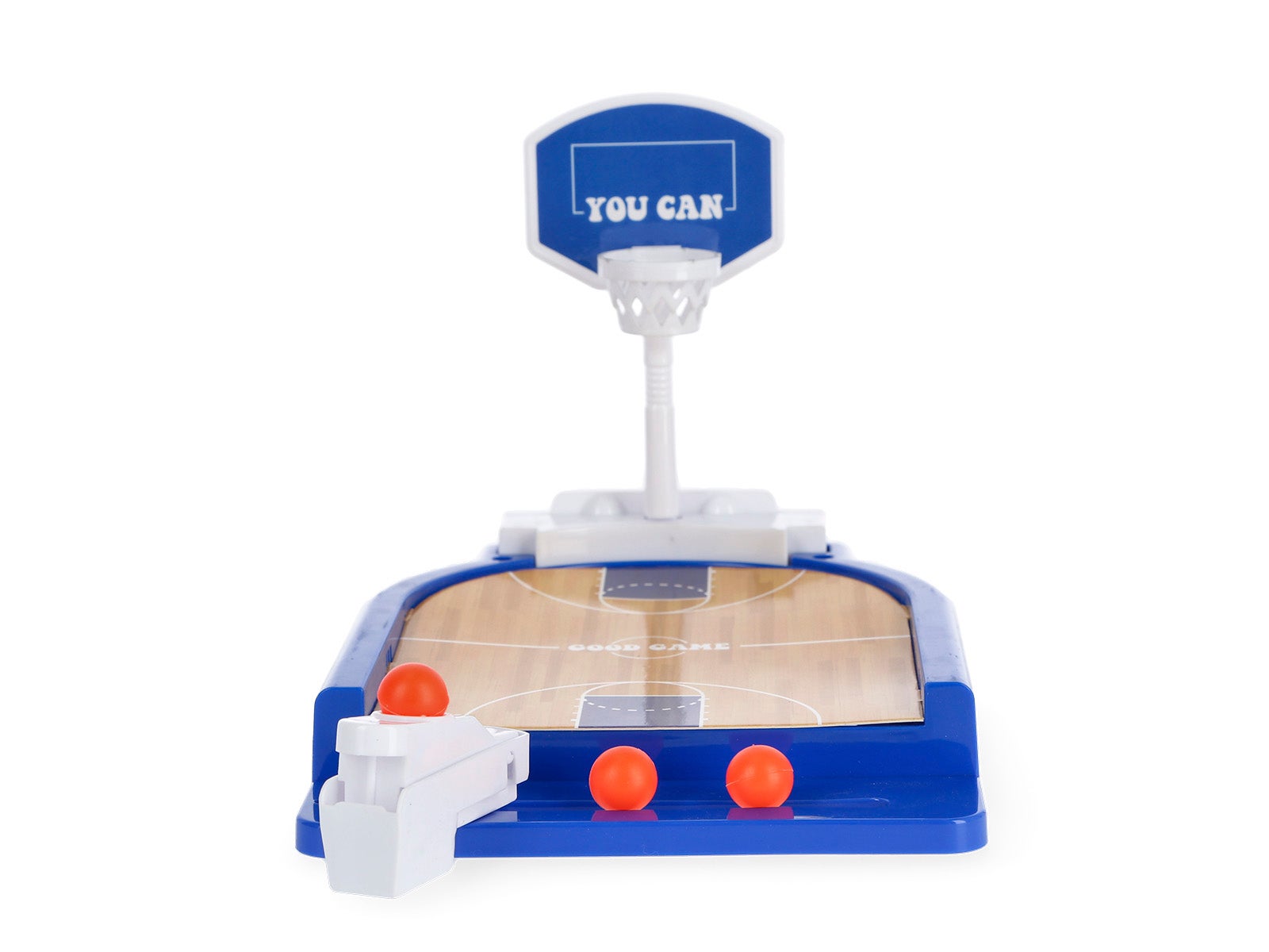 Design: Mini Basquet é um jogo vibrante e colorido de basquete em miniatura. Detalhes brancos contrastam com a base azul chamativa que representa a quadra. A rede e aro da cesta são brancos, imitando uma cesta de basquete real. O quadro branco com bordas azuis e o texto motivador "YOU CAN" dão o toque final a este incrível set de basquete de mesa.