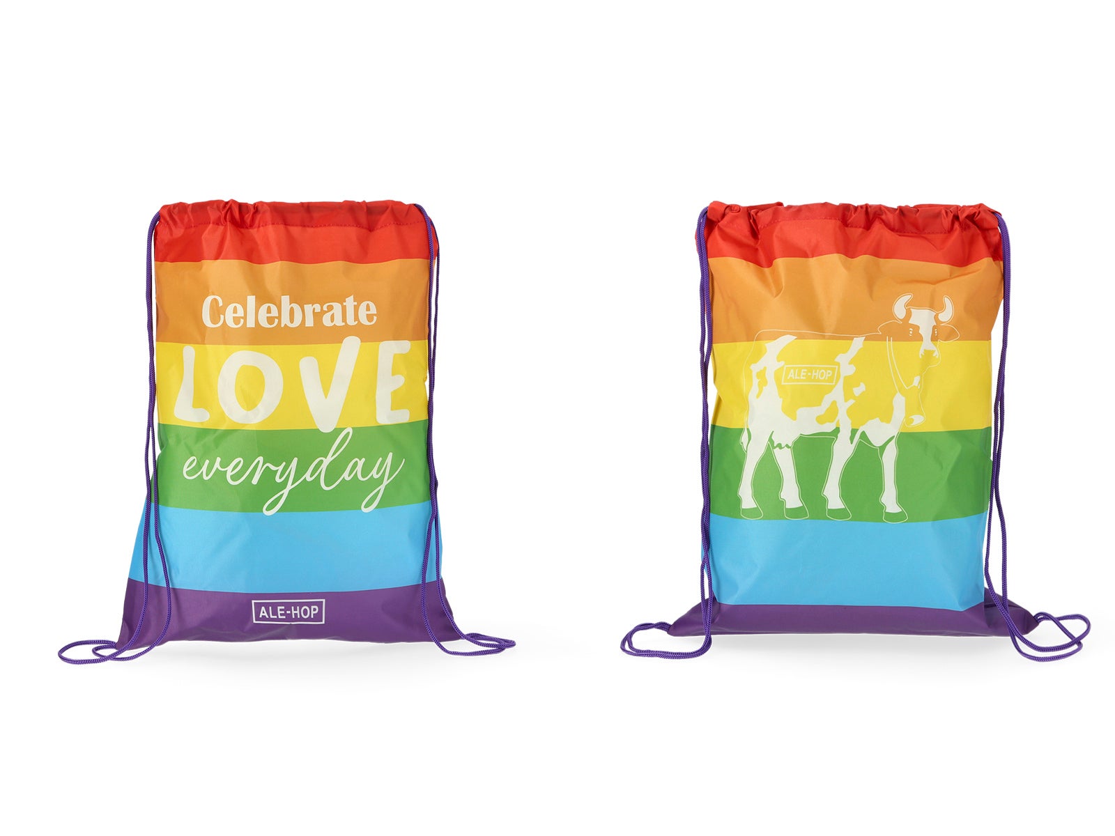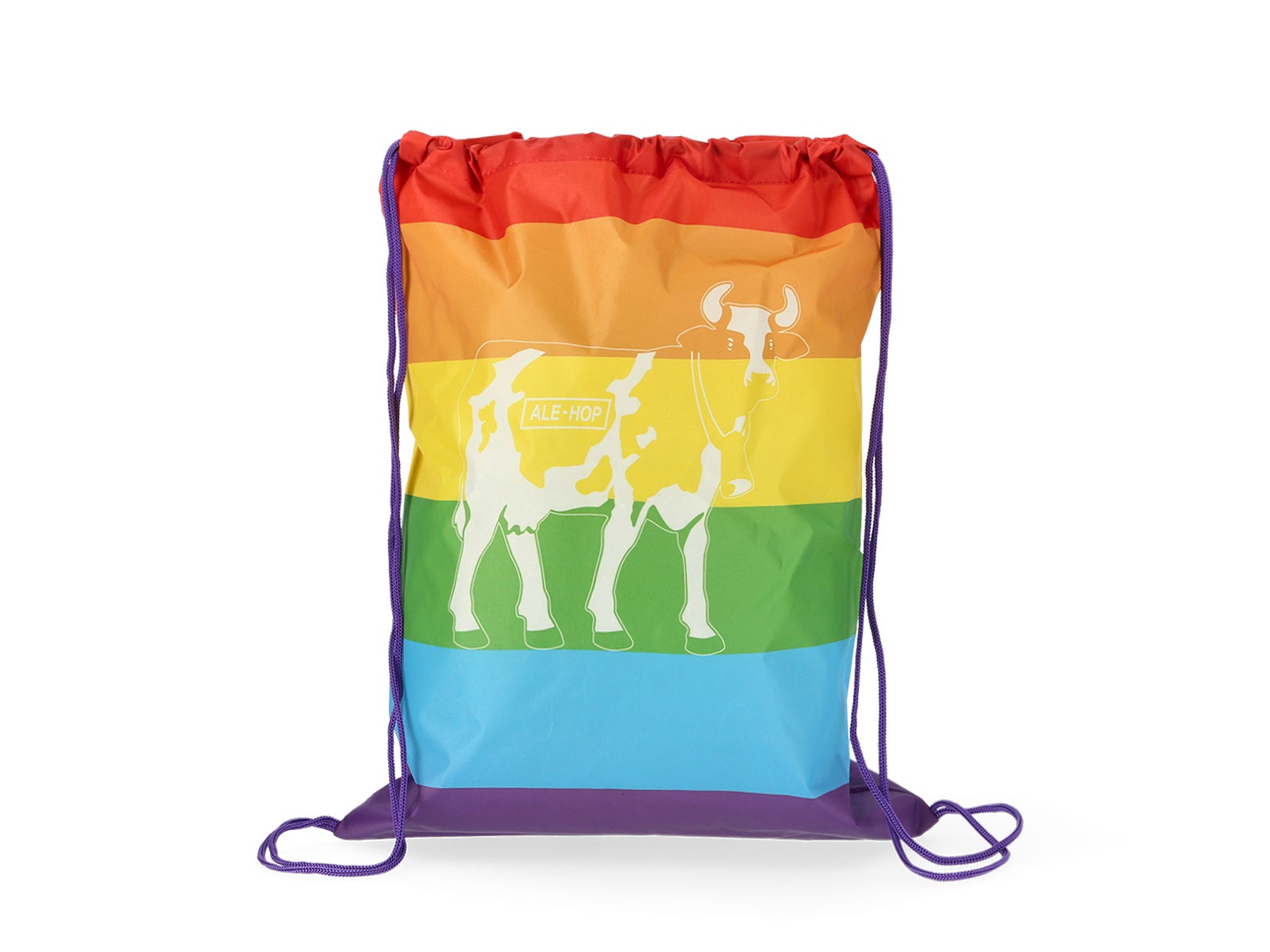- Estilo Único: Design inspirado na bandeira LGBT, com listras horizontais coloridas e uma silhueta central com dois touros opostos, característica da ALE-HOP.