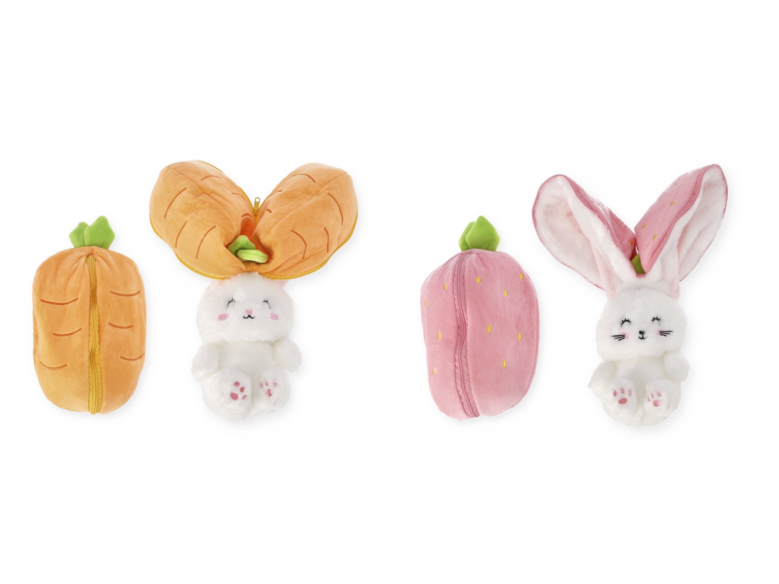 Expressa o teu humor com o Peluche reversível - Coelho. Um companheiro fofo que muda de rosto e cor com um só movimento. Divertido, suave e perfeito para oferecer!