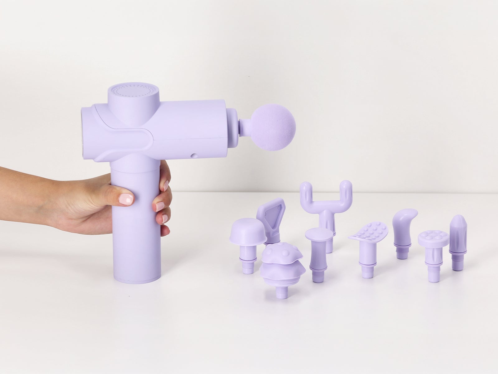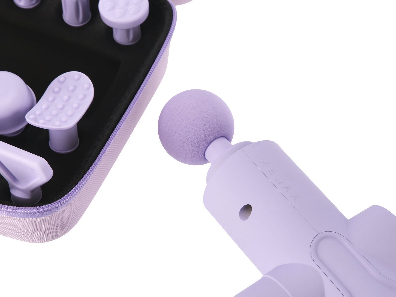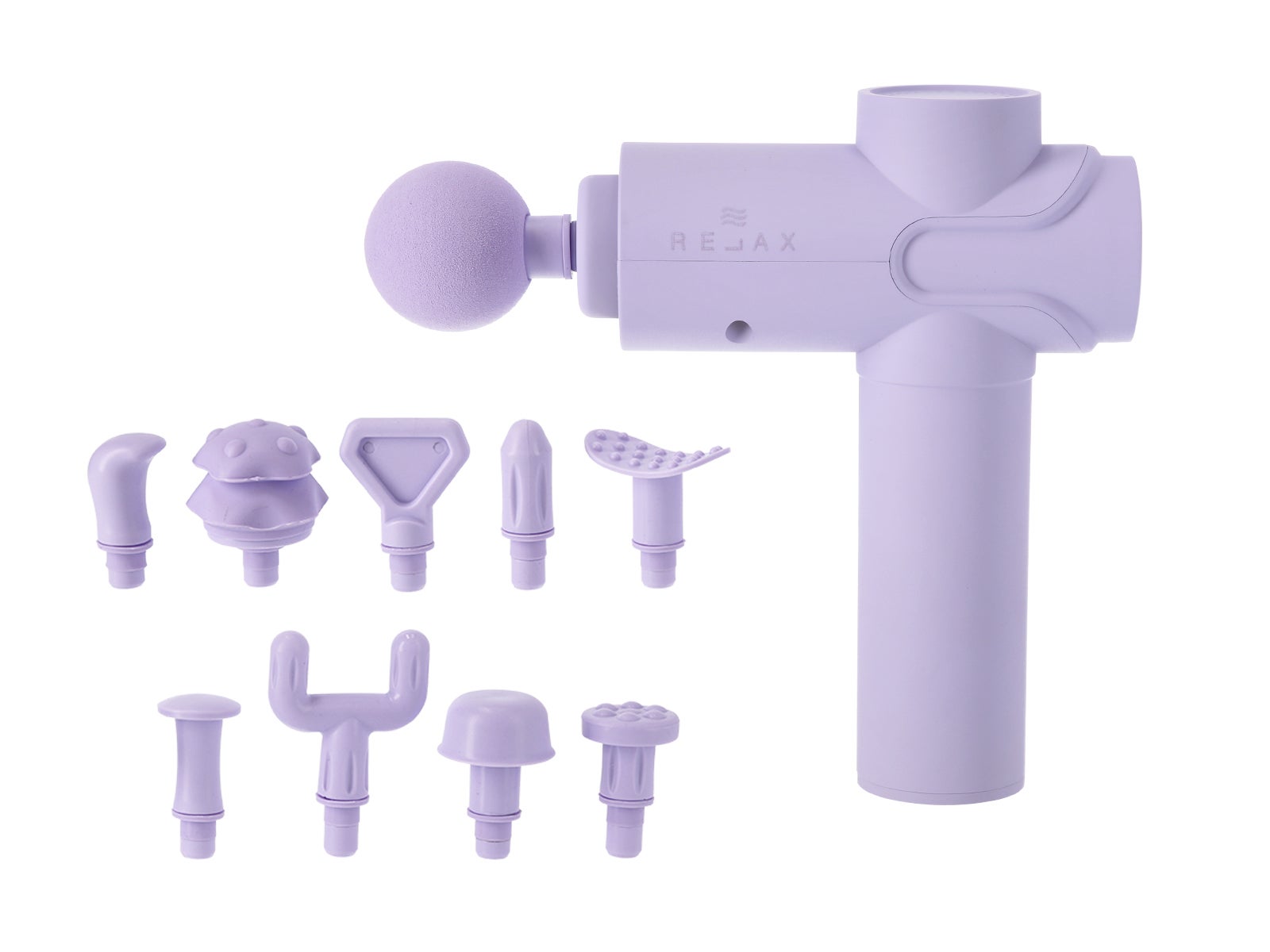 - Pistola de massagem muscular digital lilás com 10 cabeças - RELAX