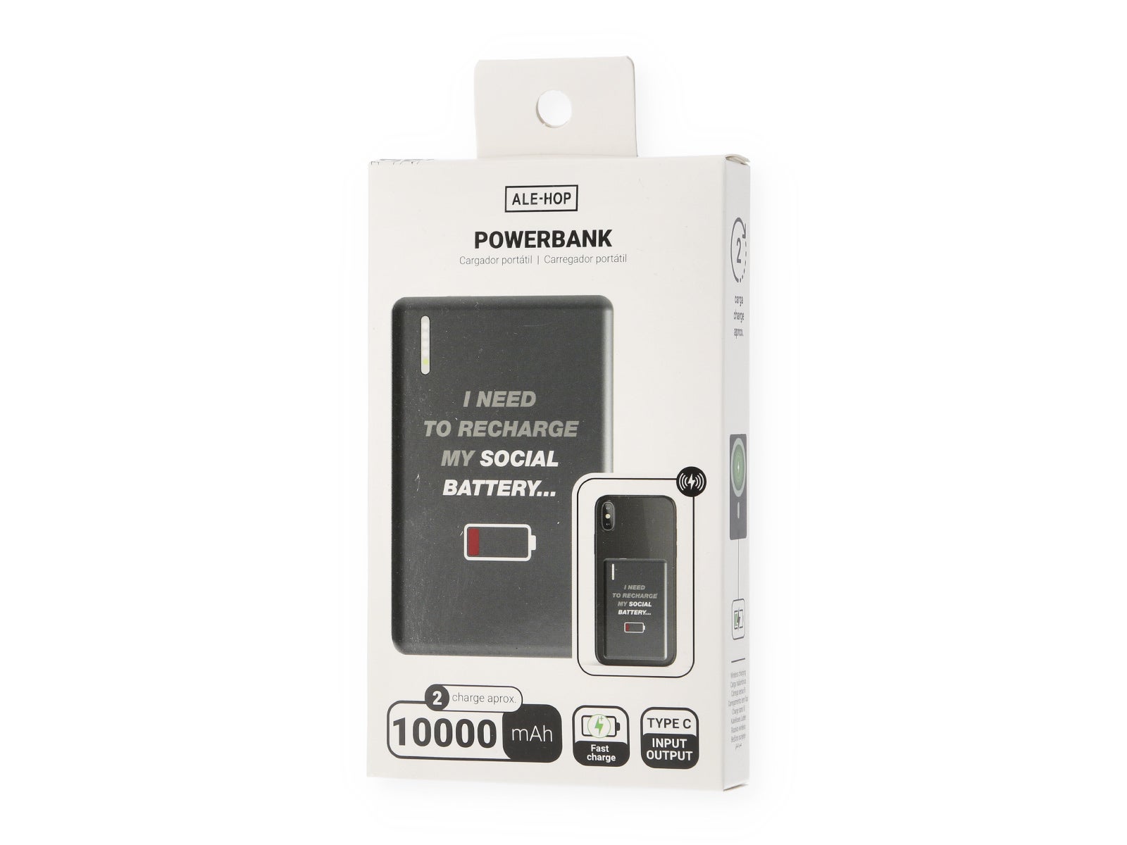 Leva contigo a bateria portátil sem fios alumínio 10000 mAh da ALE-HOP e nunca fiques sem carga. Com um design elegante e moderno, esta bateria vai salvar-te em mais de uma ocasião. Usa-a para carregar os teus dispositivos enquanto te maravilhas com o seu acabamento metálico. Porque o sério pode ser divertido, e esta bateria é a prova.