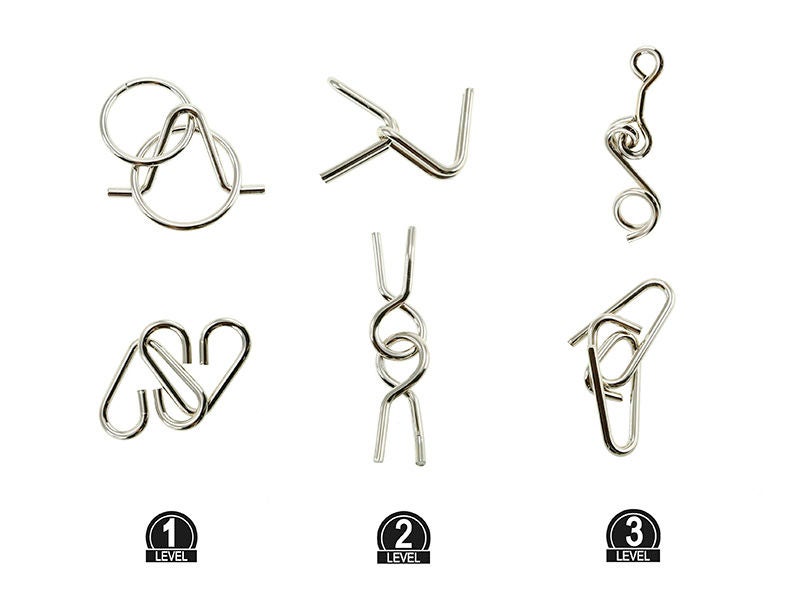 Exercite a sua mente enquanto se diverte tentando resolver o quebra-cabeça metal 2 pack-6. Poderá aumentar o nível de dificuldade em seus três níveis de intensidade. Conseguirá separar as peças?