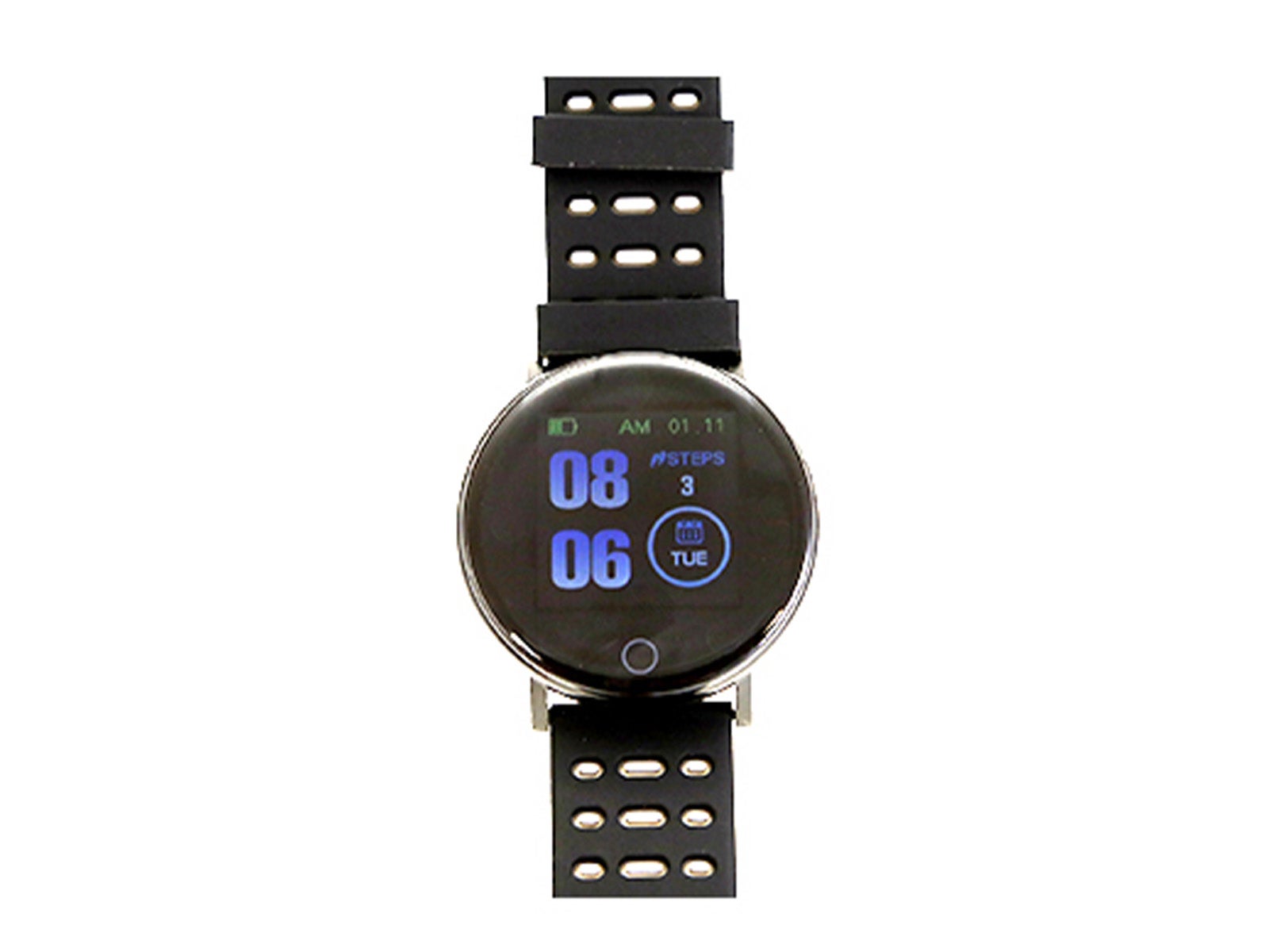 Design: relógio preto com pulseira perforada e com mostrador redondo. No mostrador poderá visualizar a hora no formato que mais goste, além de todas as funções disponíveis deste relógio.
