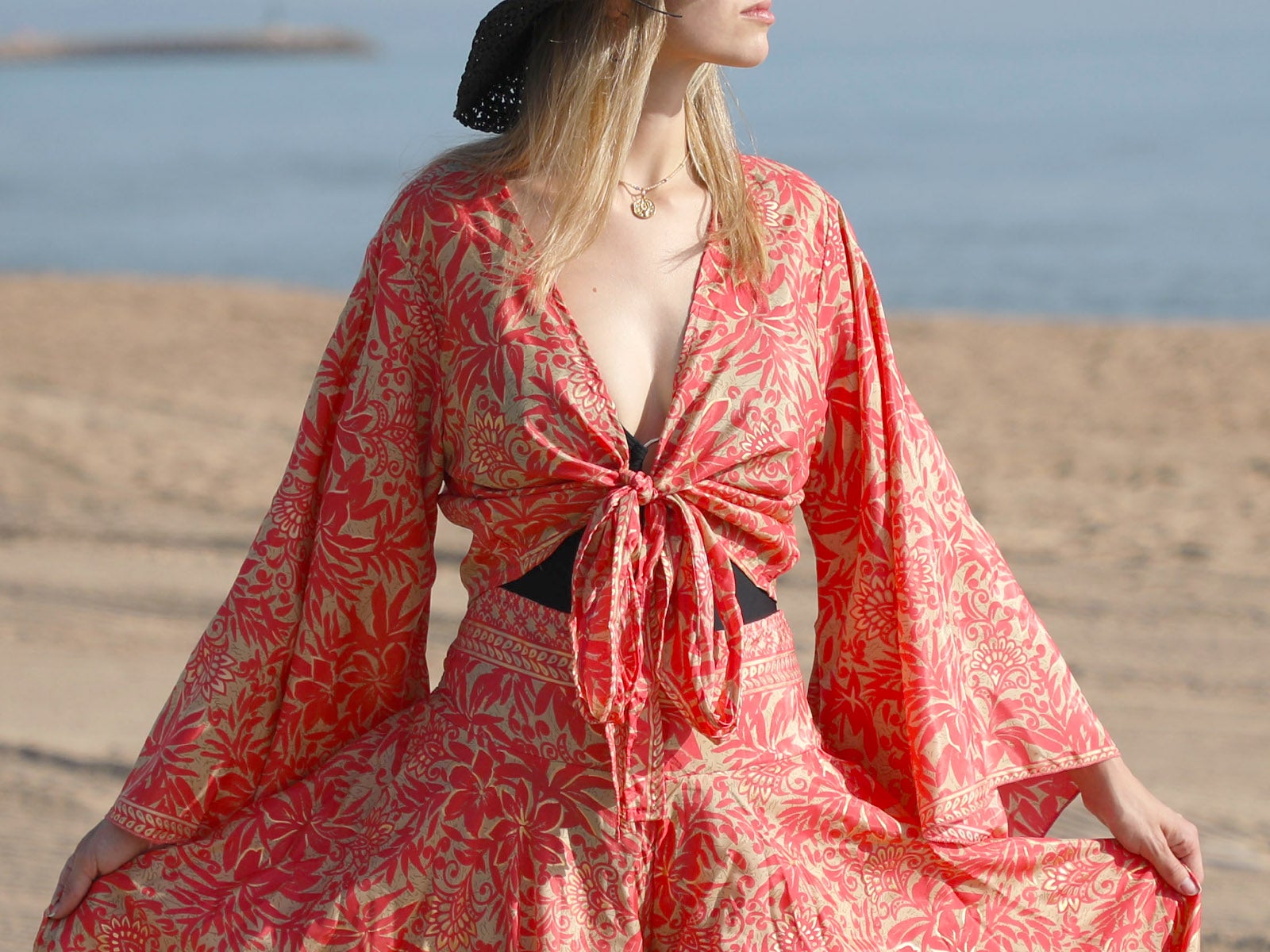 - Design: Estampado floral vibrante em tons vermelhos que alegrará qualquer conjunto.